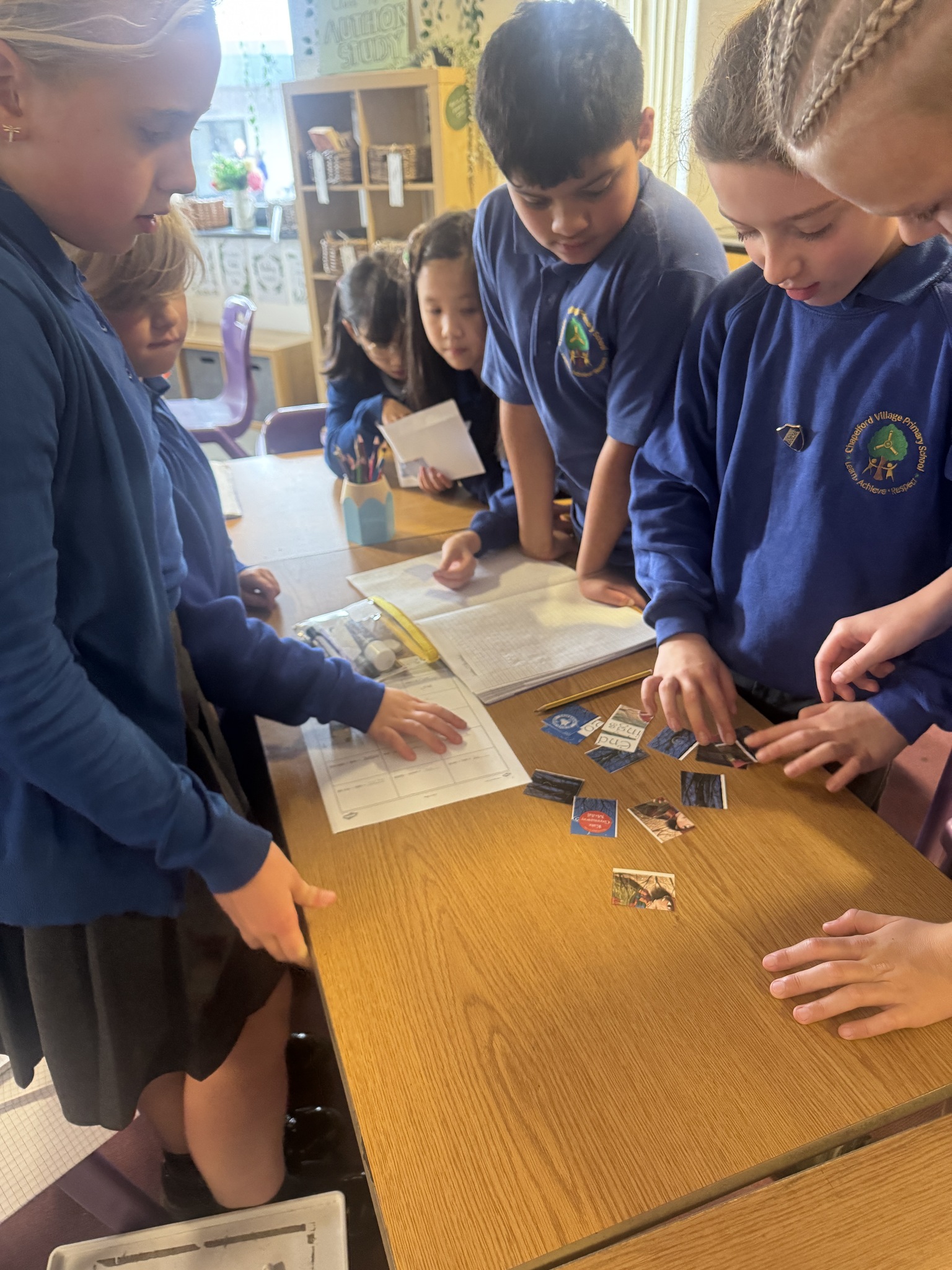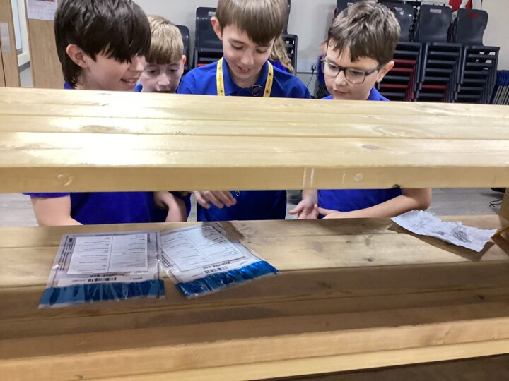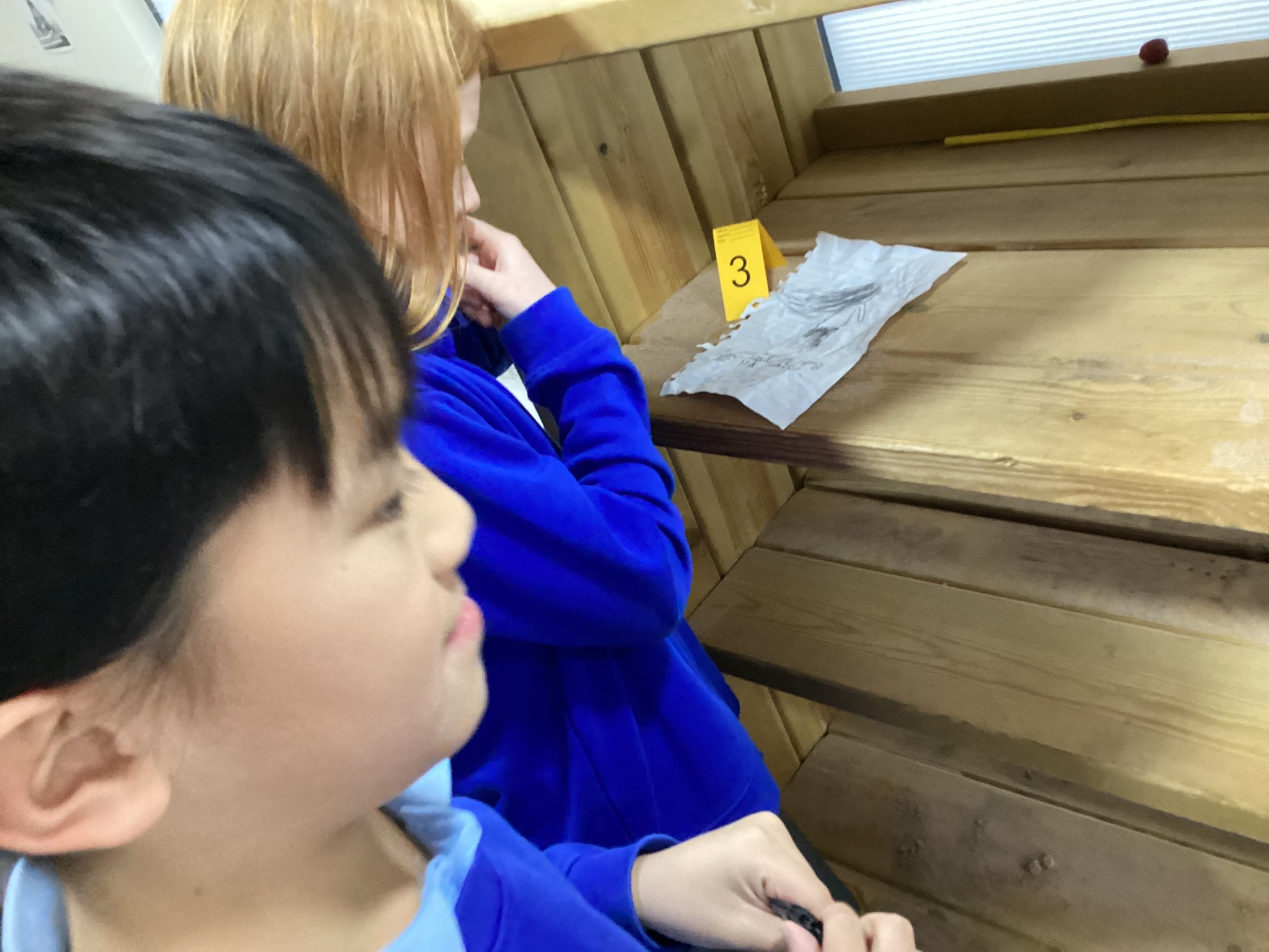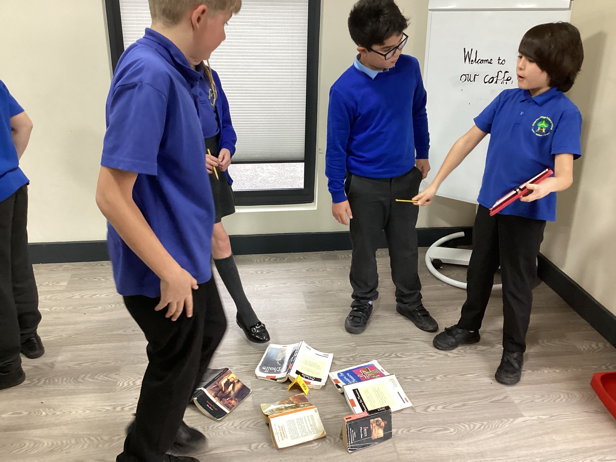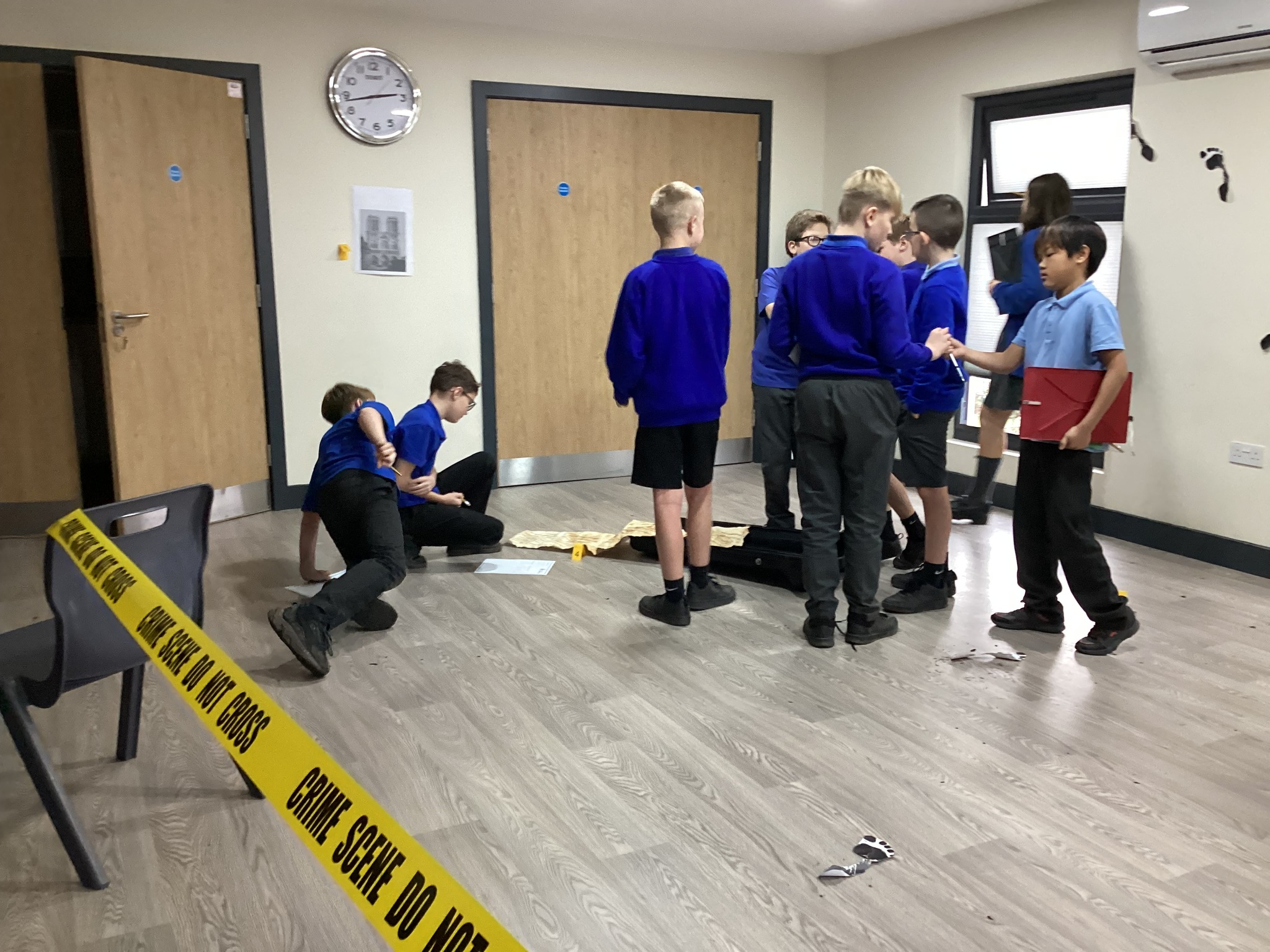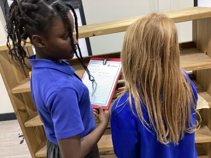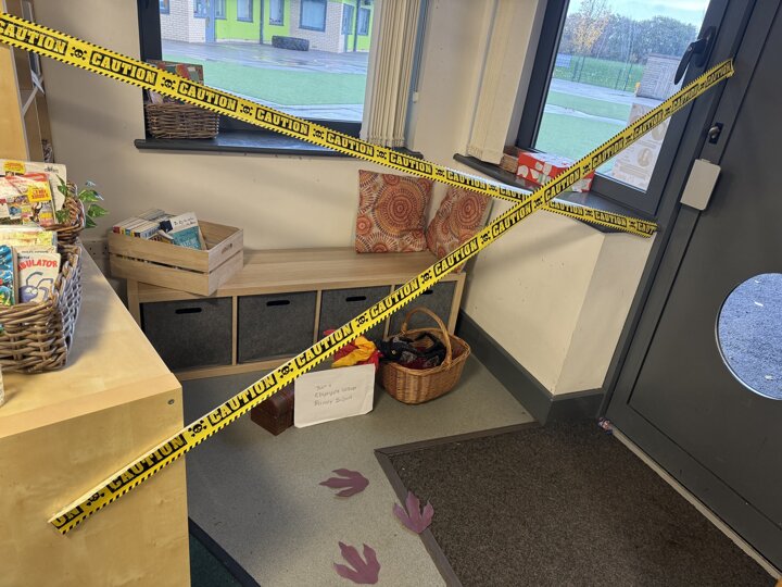 Meanwhile, Year 6 became reading crime scene investigators! Their task was to explore a crime scene filled with evidence and clues about their new author, Katherine Rundell. The children worked together to write incident reports, using their inference skills to piece together what kind of writer she might be and what her stories could be about. After reading a sneak peek of Rooftoppers, they were thrilled to see how close their predictions were.